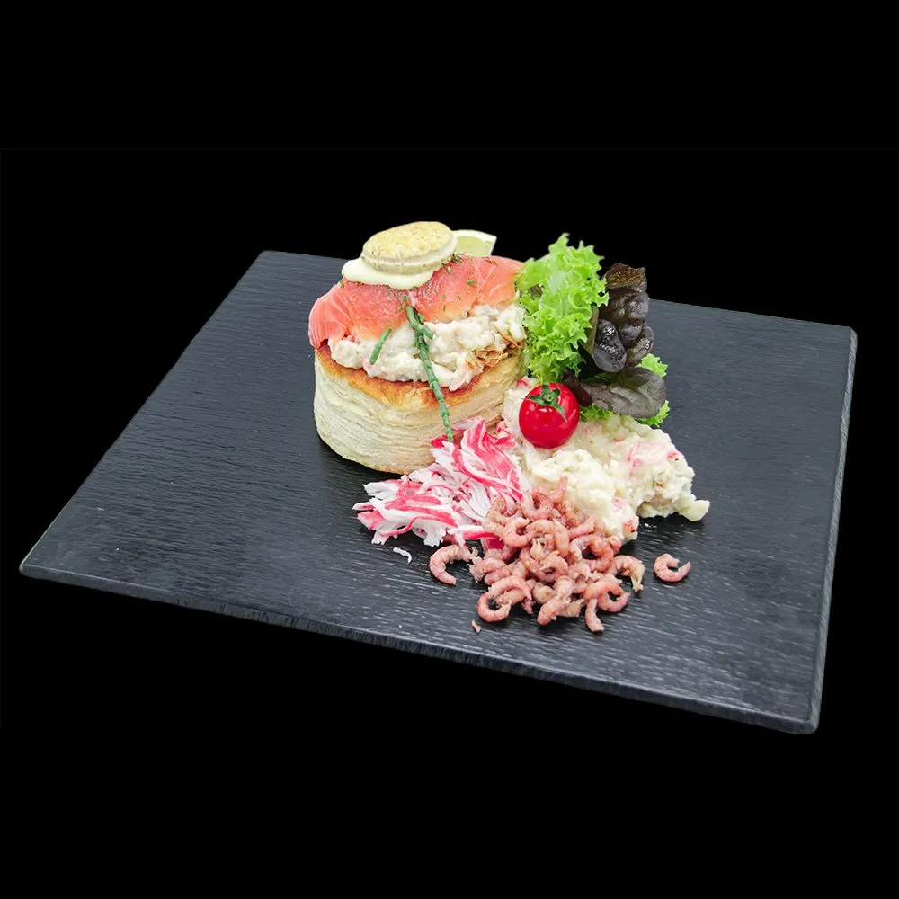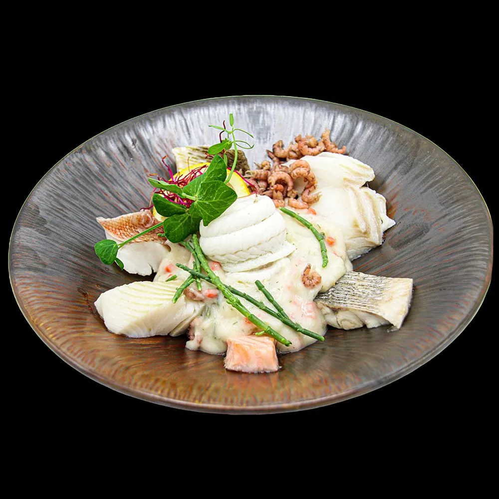 o.a. handgesneden gerookte zalm, gerookte heilbot, forel,